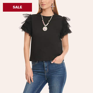 TCEC Women's Black Tiered Toole Short Sleeve Top