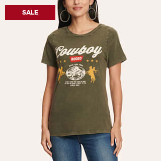 R.Rouge Women's Olive Cowboy Rodeo Graphic T-Shirt