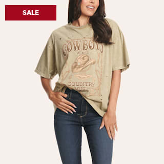 Zutter Women's Latte Cowboys & Country Music Graphic T-Shirt