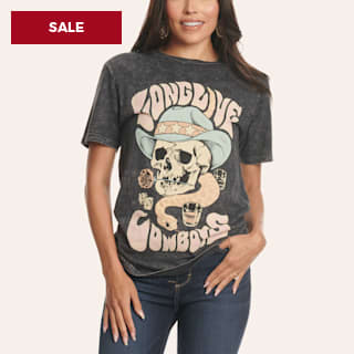 Lotus Fashion Women's Black Long Live Cowboys Graphic T-Shirt