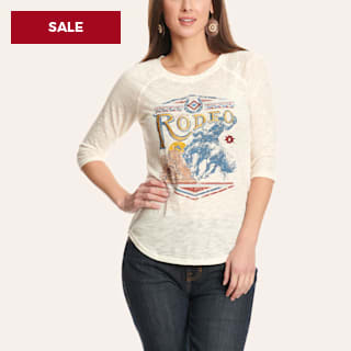 Panhandle Women's Cream Rodeo & Embroidered Graphic Raglan T-Shirt