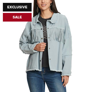 Rockin' C Women's Light Blue with Rhinestone Fringe Drop Shoulder Jacket