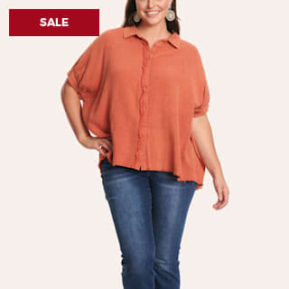 Umgee Women's Brick Mineral Washed Gauzy Top - Plus Sizes