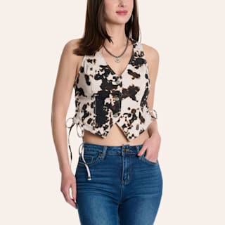 Dakota Blue Women's Cow Print Side Lace Vest