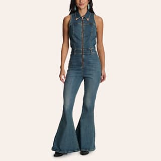 Wrangler X Lainey Wilson Medium Wash Denim Sleeveless Bell Bottom Catsuit