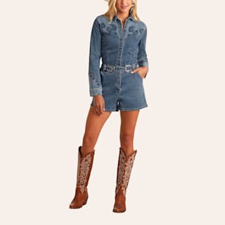 Rock & Roll Denim Women's 2 Tone Denim Curved Yoke Romper