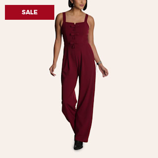 Moa Moa Women's Wine Bow-Front Wide Leg Jumpsuit
