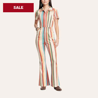 Fashion Express Women's Toasted Sand & Colorful Serape Faux Suede Short Sleeve Flare Leg Jumpsuit