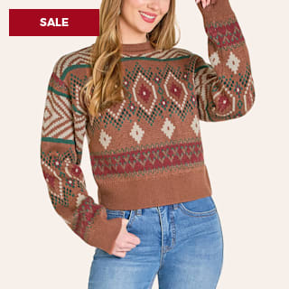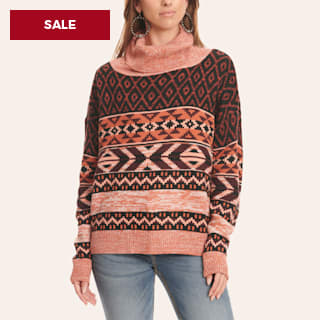 Rock & Roll Demin Women's Cinnamon Aztec Knit Sweater