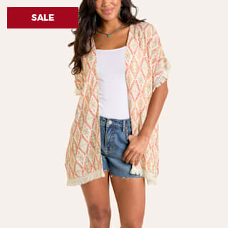 Rock & Roll Denim Women's Coral Aztec Print Kimono