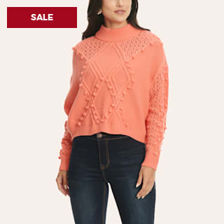 Rock & Roll Denim Women's Bright Coral Long Sleeve Sweater