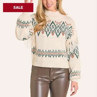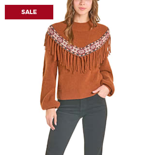 Rock & Roll Denim Women's Burnt Sienna Border Fringe Sweater