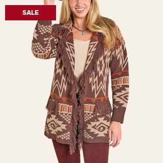 Rock & Roll Denim Women's Light Brown Aztec Print Cardigan