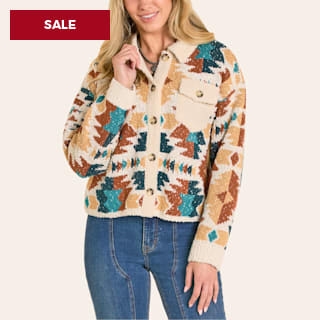 Rock & Roll Denim Women's Cream Aztec Print Sherpa Cardigan