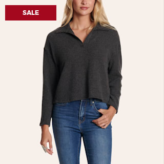 Moa Moa Women's Charcoal Ribbed Knit Cropped Sweater
