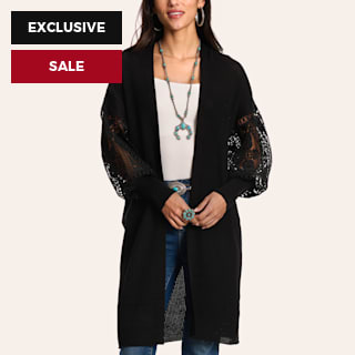 Rockin C Women's Black Lace Sleeve Sweater Cardigan
