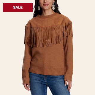 Rockin' C Women's Caramel Suede & Fringe Sweater