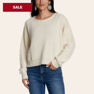 Rockin' C Women's Ivory Frayed Hem Knit Sweater
