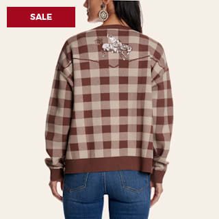 Rockin' C Women's Brown Plaid Knit Cardigan