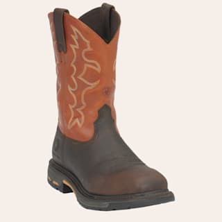 Ariat Men's WorkHog Earth Brown and Brick Orange Square Steel Toe Work Boot