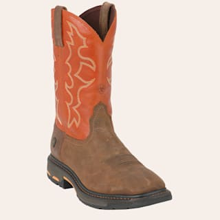 Ariat Men's WorkHog Earth Brown and Brick Orange Wide Square Toe Work Boots