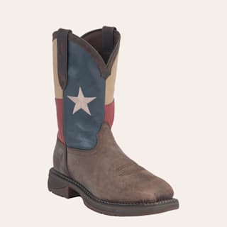 Durango Men's Rebel Distressed Brown and Texas Flag Square Steel Toe Work Boot