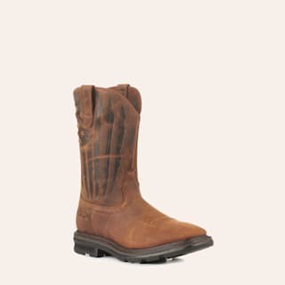Ariat Men's Sierra Shock Shield Patriot Distressed Brown American Flag Square Steel Toe Work Boots