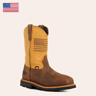 Thorogood Men's Brown and Tan with USA Flag Wide Square Composite Toe Work Boots