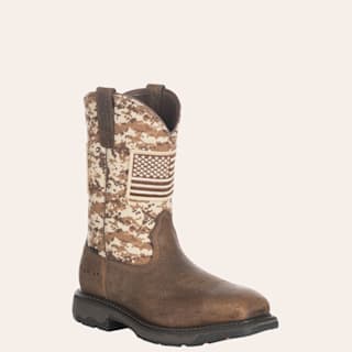 Ariat Men's WorkHog Patriot Earth Brown and Sand with Flag Patch Square Steel Toe Work Boot