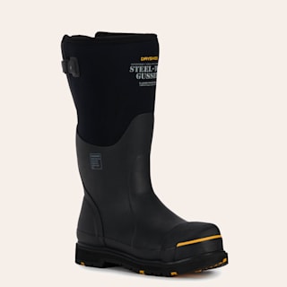 Dryshod Men's Black and Yellow Adjustable Gusset Round Steel-Toe Rubber Work Boot