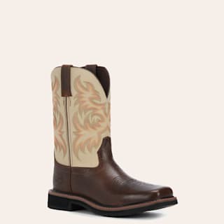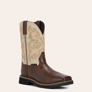 Justin Men's Stampede Driller Copper Brown and Ivory Square Toe Work Boot