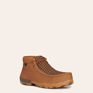 Twisted X Men's Clay and Cocoa Brown Basket Weave Lace Up Composite Round Toe Driving Moc Work Shoe