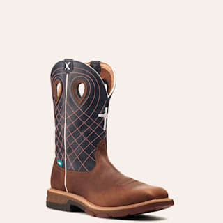 Twisted X Men's Brown and Navy with Cross Embroidery CellStretch Square Toe Work Boot