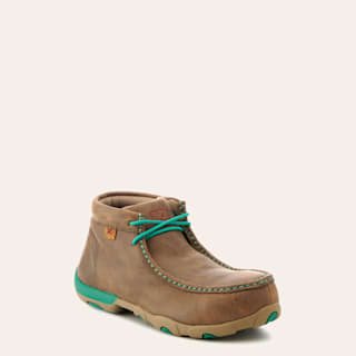 Twisted X Women's Brown Bomber with Turquoise Laces Chukka Driving Moc Alloy Toe Work Shoe