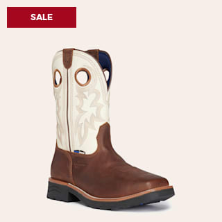 Tony Lama Men's Fireball Brown and White Waterproof Wide Square Composite Toe Work Boots