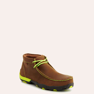 Twisted X Men's Distressed Brown with Neon Yellow Laces Chukka Driving Moc Steel Toe Work Shoe