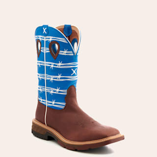 Twisted X Men's Rust Brown and Sky Blue with Barbwire Embroidery CellStretch Square Alloy Toe Work Cowboy Boot
