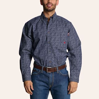 Forge Men's Navy Floral Print FR Long Sleeve Shirt