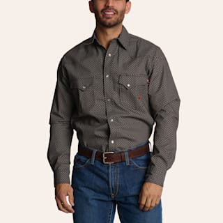 Forge Men's Gray Geo Print FR Long Sleeve Pearl Snap Western Shirt