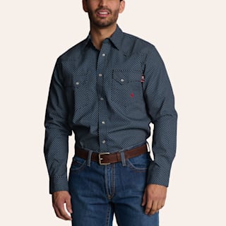 Forge Men's Dark Blue Geo Print FR Long Sleeve Pearl Snap Western Shirt