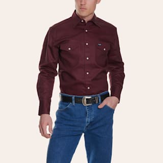 Wrangler Men's Burgundy Twill Long Sleeve Workshirt - Big and Tall
