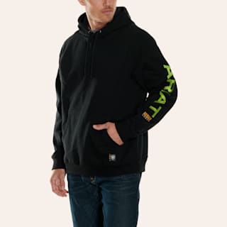 Ariat Men's Rebar 10 OZ All Weather Black with Lime Green Logo Work Hoodie