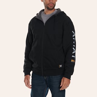 Ariat Rebar Men's Black 10 OZ All Weather Full Zip Graphic Hooded Jacket