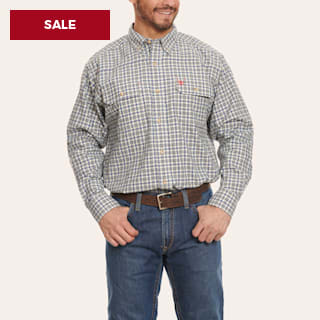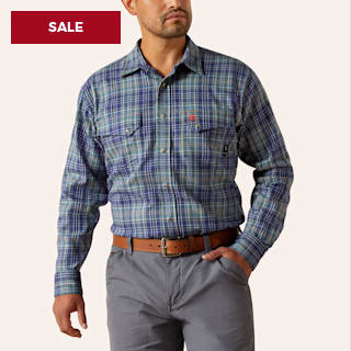 Ariat Work FR Men's Featherlight Olive and Blue Plaid Long Sleeve Work Shirt