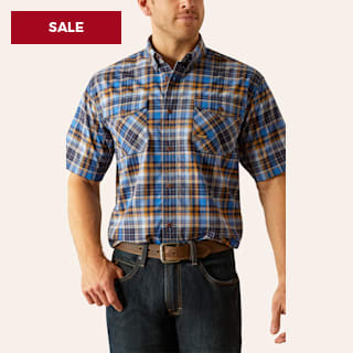 Ariat Men's Rebar DuraStretch Blue Black & Gold Plaid Work Shirt