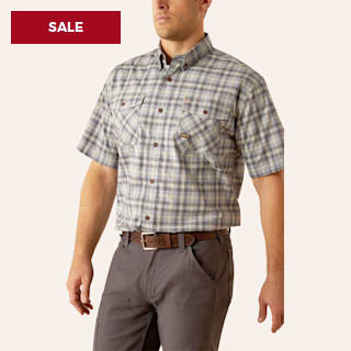Ariat Men's Rebar DuraStretch Cornflower & Gray Plaid Work Shirt