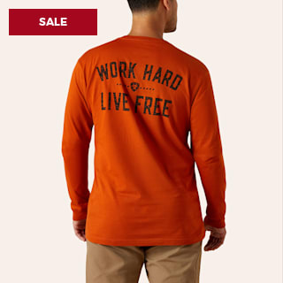 Ariat Men's Clay Rebar Cotton Work Hard Live Free Long Sleeve Graphic T-Shirt
