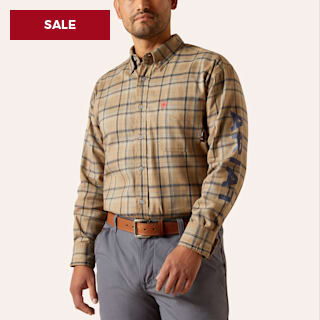 Ariat Men's FR Dean Field Khaki Logo Work Shirt