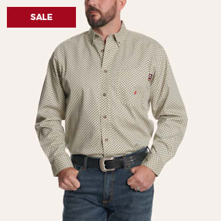 Forge Men’s Flame Resistant Tan Long Sleeve Wallpaper Print Shirt