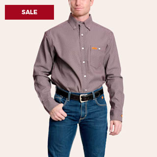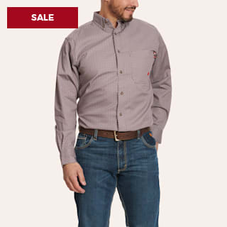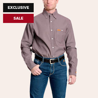Wrangler Men's FR Maroon & Gray Geo Print Western Work Shirt